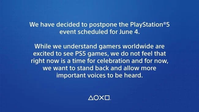 Sony mengumumkan melalui Twitter bahwa telah menunda event pentingnya dalam hal promosi gamenya, padahal sudah menjadwalkan event dapat digelar tanggal 4 Juni 2020. Sony mengatakan bahwa “bukan waktu yang tepat untuk merayakannya” dan menyatakan ingin “berdiri kembali dan memungkinkan lebih banyak suara penting untuk didengar.”